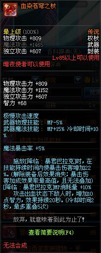 | 85 | 血染苍穹之杖 | *恐怖邪念体 掉落(地下城:能量阻截战 11图) *设计图(能量阻截战 登场的NPC加百利 出售) |
