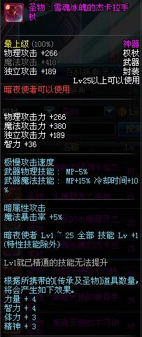 | 25 | 圣物 : 雪魂冰魄的杰卡拉手杖 | *Lv24~31普通地下城怪物掉落 | ||