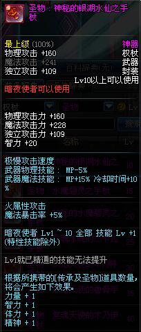 | 20 | 圣物 : 神秘的水魔碧灵之手杖 | *Lv19~26普通地下城怪物掉落 | ||