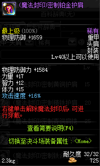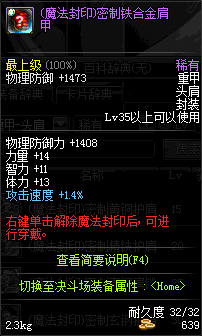 | 35 | (魔法封印)密制钛合金肩甲 | *Lv34~41普通地下城怪物掉落 |
