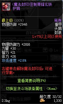 | 30 | (魔法封印)密制玄钢护肩 | *Lv29~36普通地下城怪物掉落 *完成[唤醒亡者的力量]任务 *使用Lv29~36怪物掉落的设计图进行制作 |