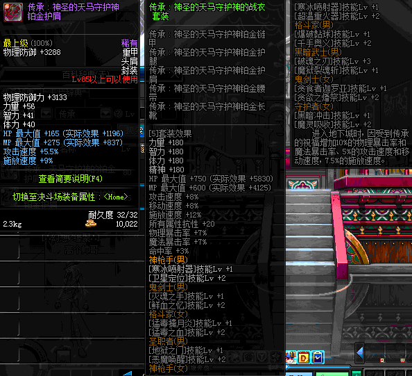 | 80 | 圣物 :天马守护神的铂金护肩 | *Lv80~86普通地下城怪物掉落 | ||