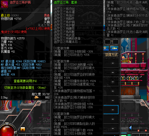 | 70 | 圣物 :荣耀的摩羯守护神的铂金护肩 | *Lv70~76普通地下城怪物掉落 |