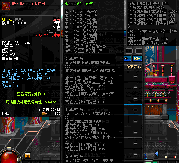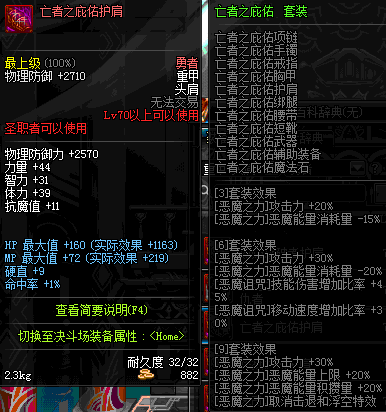 | 70 | 邪神之怒护肩 | *Lv69~76深渊地下城怪物掉落 | 邪神之怒套装 | |