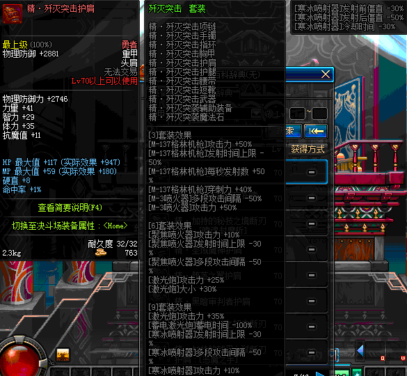| 82 | 真 · 卡勒特的火炮师玄铁护肩 | *设计图(70LV以上普通地下城 登场的NPC加百利 出售) *卡勒特的火炮师玄铁护肩 → 用远古神器装备进化书升级(NPC船长鲁特 出售) |