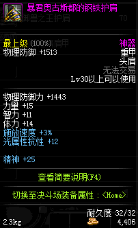 | 30 | 暴君奥古斯都的钢铁护肩 | *暴君奥古斯都 掉落(暴君的祭坛) *在NPC克伦特的物品店购买(阿拉德陨石×64) |