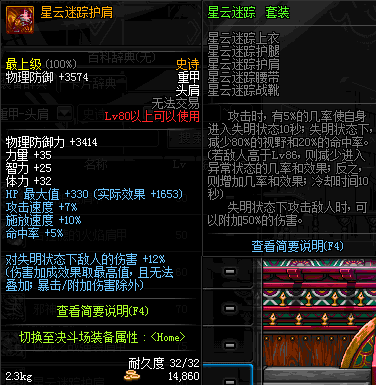 | 80 | 星云迷踪护肩 | *Lv79~86深渊地下城怪物掉落 | 星云迷踪 套装 | |