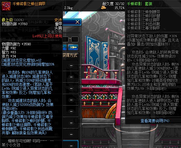 | 85 | 千蛛碎影之蛛丝肩甲 | *Lv84~91深渊地下城怪物掉落 | 千蛛碎影 套装 | |