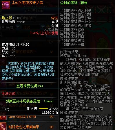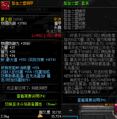 | 85 | 誓血之盟肩甲 | *Lv84~91深渊地下城怪物掉落 | 誓血之盟 套装 | |
