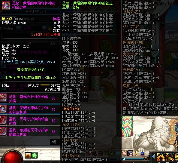 | 65 | 圣物 :摩羯守护神的铂金护肩 | *Lv65~71普通地下城怪物掉落 |