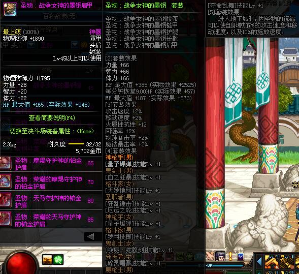 | 45 | 圣物 :战争女神的墨钢肩甲 | *Lv45~51普通地下城怪物掉落 |