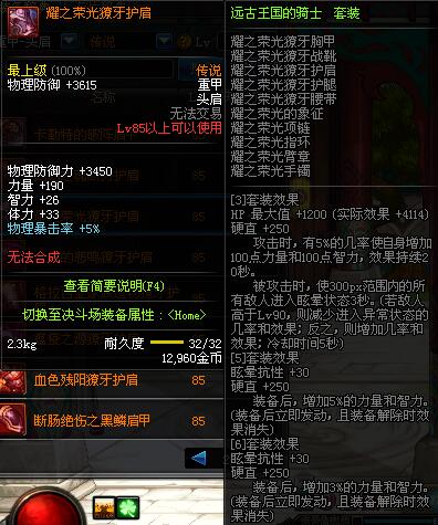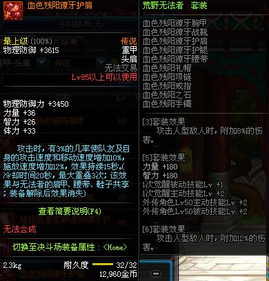 | 85 | 血色残阳獠牙护肩 | *昨日之巴斯顿 掉落 (在远古地下城里出没。) *从NPC鲁特的物品店出售的[血色残阳防具礼盒]中获得 |