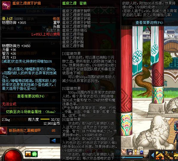 | 85 | 瘟疫之源獠牙护肩 | *昨日之巴斯顿 掉落 (在远古地下城里出没。) *从NPC鲁特的物品店出售的[瘟疫之源防具礼盒]中获得 |