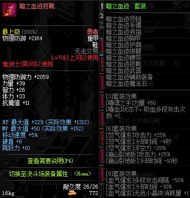 | 85 | 誓血之盟战靴 | *Lv84~91深渊地下城怪物掉落 | 誓血之盟 套装 | |