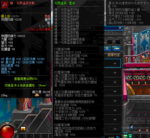 | 70 | 邪神之怒短靴 | *Lv69~76深渊地下城怪物掉落 | 邪神之怒套装 | |