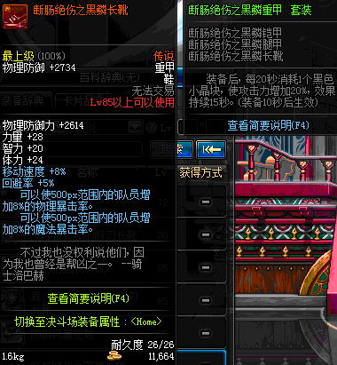 | 85 | 断肠绝伤之黑鳞长靴 | *昨日之巴斯顿 掉落 (在远古地下城里出没。) *从NPC鲁特的物品店出售的[断肠绝伤防具礼盒]中获得 *任务奖励(地下城:比尔马克帝国试验场 NPC娜塔莉娅·休勒) |