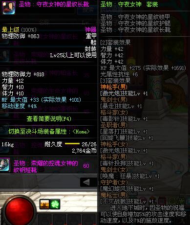 | 25 | 圣物 :守夜女神的星纹长靴 | *Lv24~31普通地下城怪物掉落 | ||