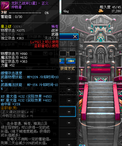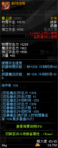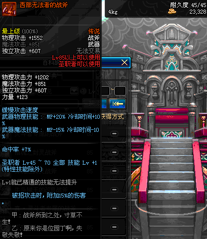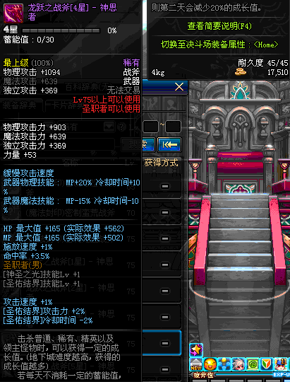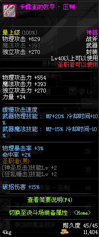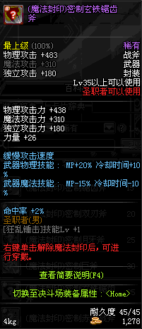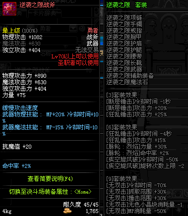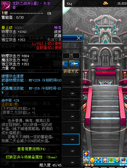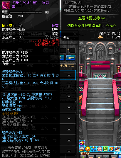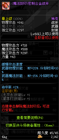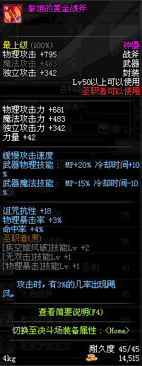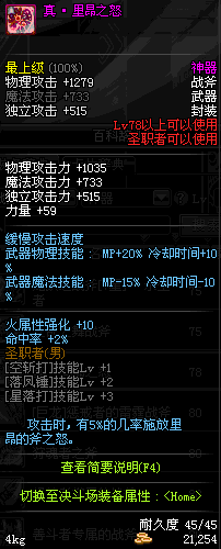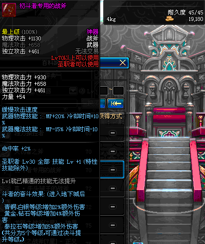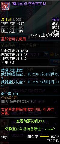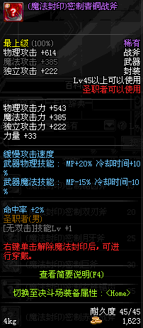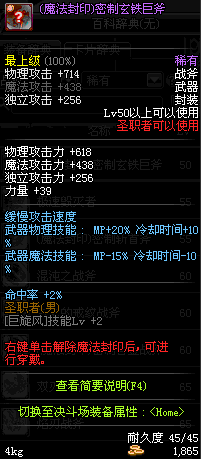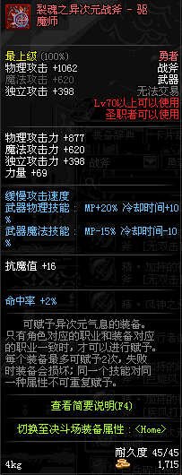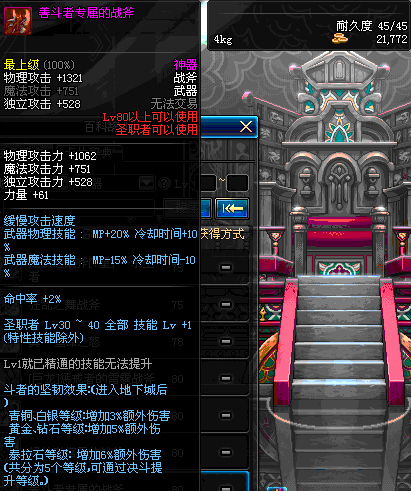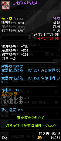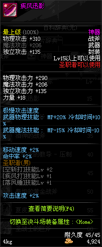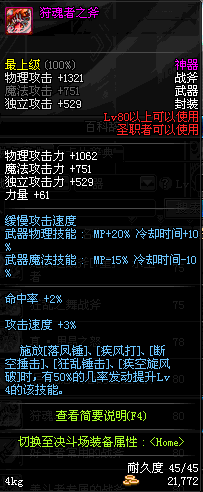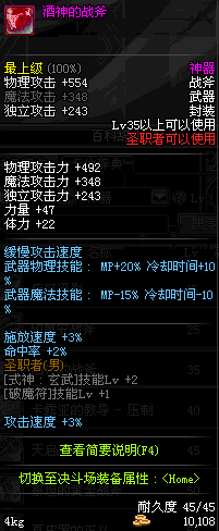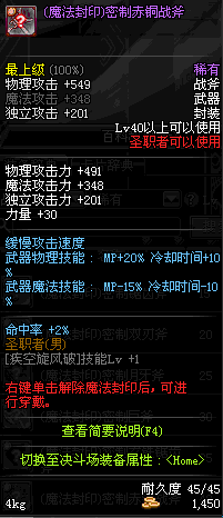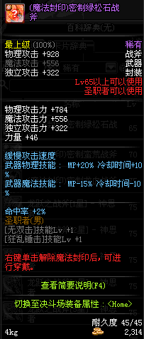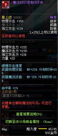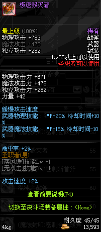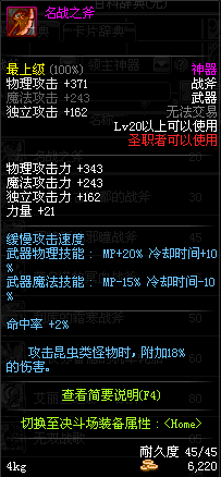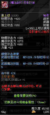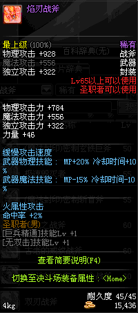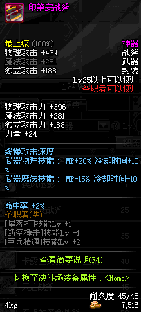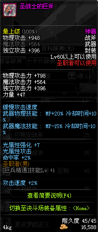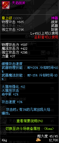 | 45 | 天启战斧 | *Lv45~51普通地下城怪物掉落 *在加百利的神秘商店购买 |