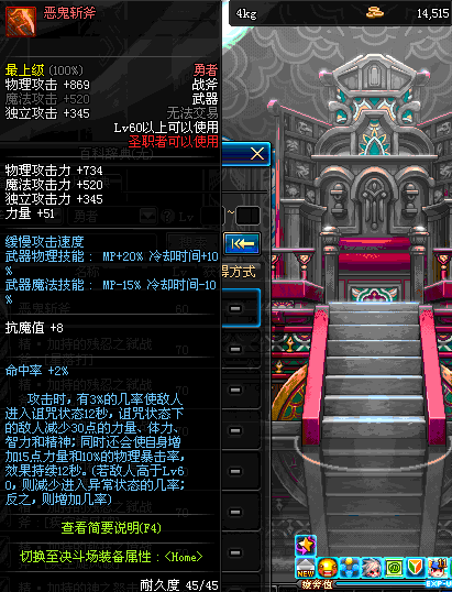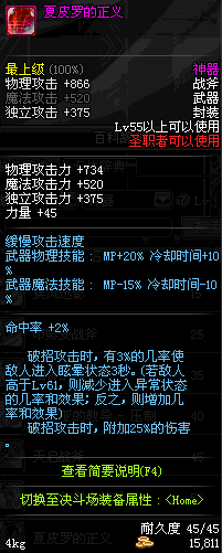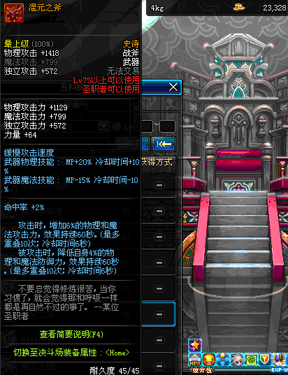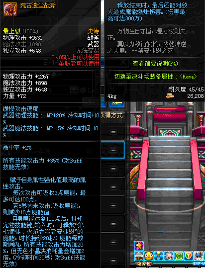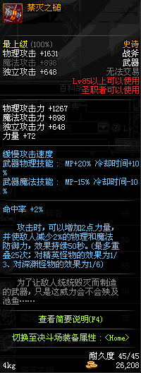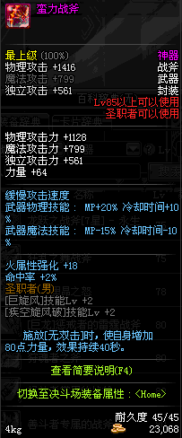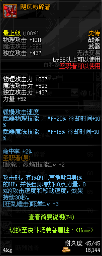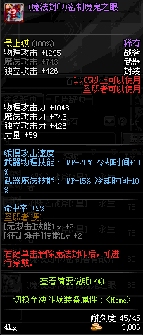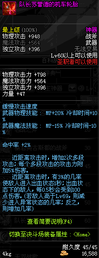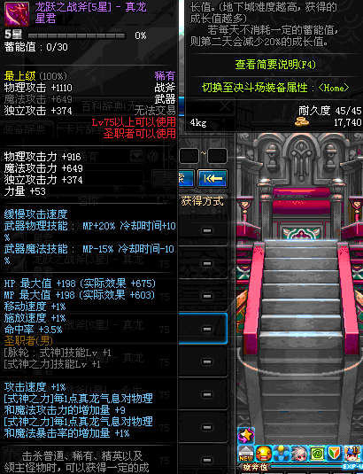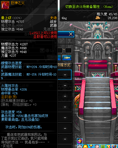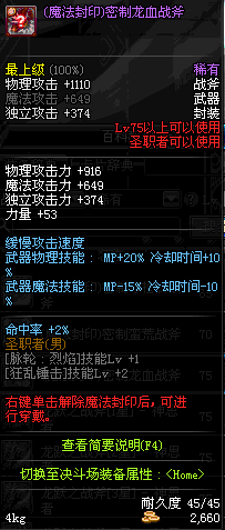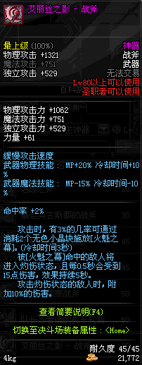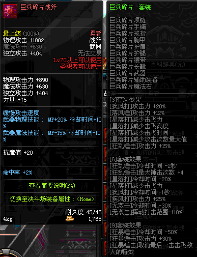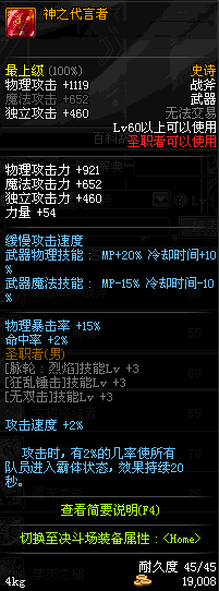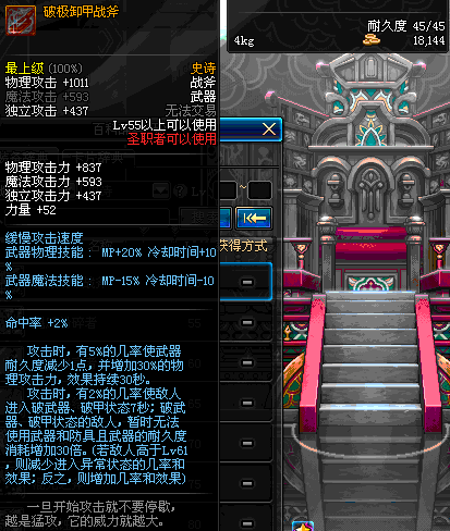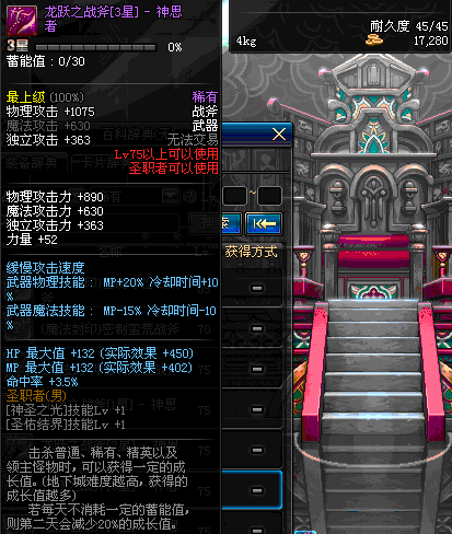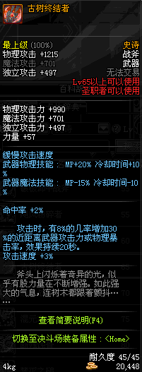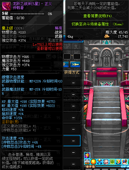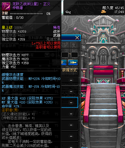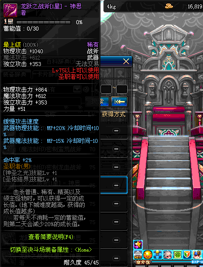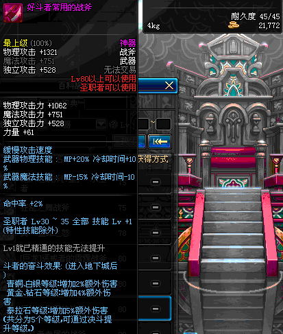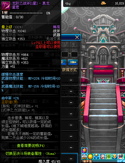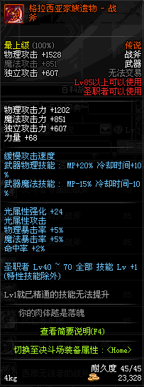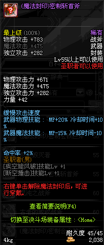 | 45 | 天启战斧 | *Lv45~51普通地下城怪物掉落 *在加百利的神秘商店购买 |