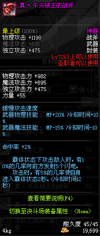 | 72 | 真 · 牛头械王的战斧 | *设计图(70LV以上普通地下城 登场的NPC加百利 出售) *牛头械王的战斧 → 用远古神器装备进化书升级(NPC船长鲁特 出售) |