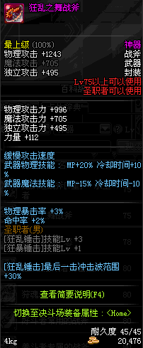| 75 | 狂乱之舞战斧 | *Lv75~81普通地下城怪物掉落 *在加百利的神秘商店购买 |