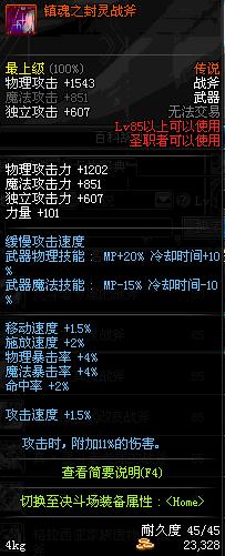 | 85 | 镇魂之封灵战斧 | *时空之门地区 - 吟游诗人艾丽丝 出售 (镇魂之石×100) *购买镇魂武器礼盒(低级镇魂之石×140) |