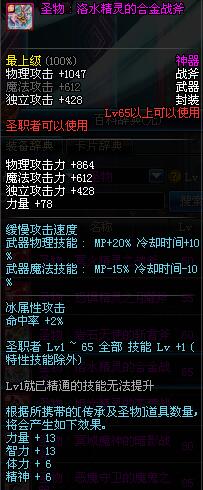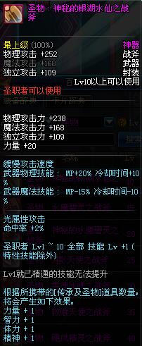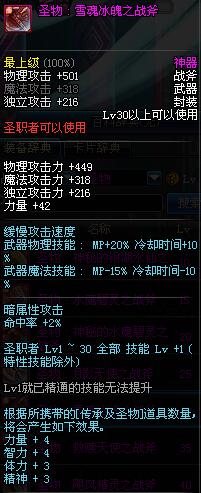 | 30 | 圣物 : 雪魂冰魄之战斧 | *Lv29~36普通地下城怪物掉落 |
