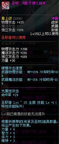 | 25 | 圣物 : 月影天使之战斧 | *Lv24~31普通地下城怪物掉落 | ||