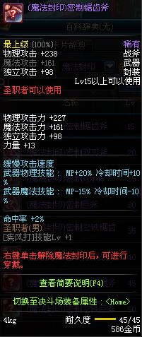 | 15 | (魔法封印)密制锯齿斧 | *Lv13~21普通地下城怪物掉落 *完成[专职贺礼]任务 |