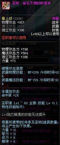 | 60 | 圣物 : 岩石天使的斩首斧 | *Lv58~66普通地下城怪物掉落 |