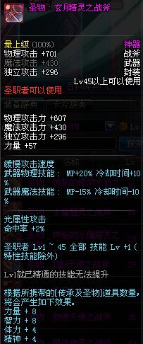 | 45 | 圣物 : 玄月精灵之战斧 | *Lv45~51普通地下城怪物掉落 |