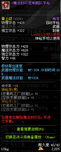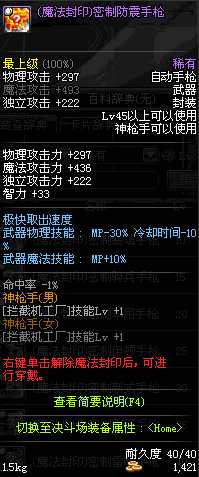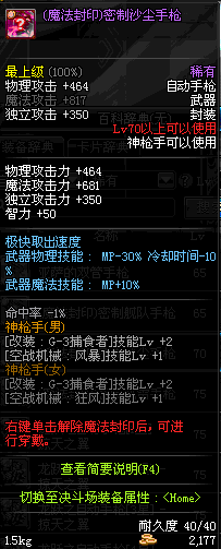 | 10 | (魔法封印)密制装填手枪 | *Lv8~14普通地下城怪物掉落 | ||