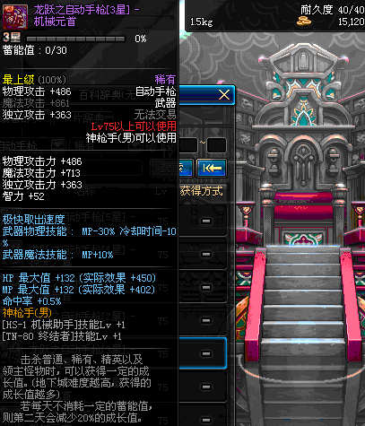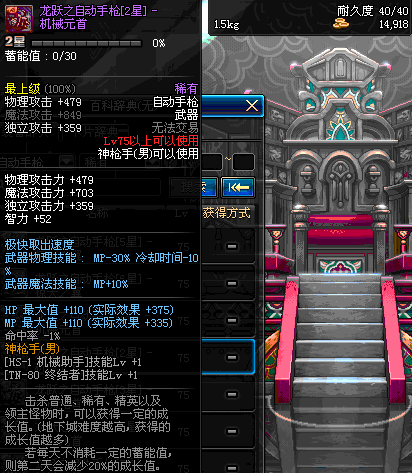 | 75 | (魔法封印)密制风雷手枪 | *Lv75~81普通地下城怪物掉落 *完成[调查紫雾团]任务 *使用Lv75~81怪物掉落的设计图进行制作 |