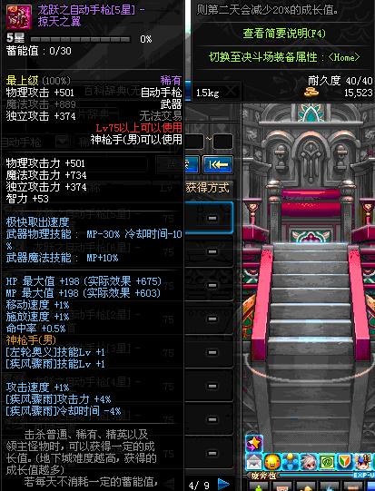 | 75 | 龙跃之自动手枪[4星] – 掠天之翼 | *完成二次觉醒任务后可以从NPC小铁柱处获得此道具。 | ||