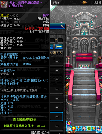 | 85 | 圣物 : 恶魔守卫的堡垒 -×17自动手枪 | *Lv85~91普通地下城怪物掉落 | ||