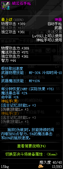 | 15 | (魔法封印)密制骑兵手枪 | *Lv13~21普通地下城怪物掉落 *完成[专职贺礼]任务 |