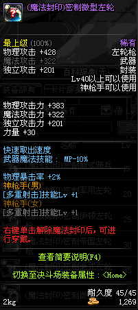 | 45 | (魔法封印)密制转轮手枪 | *Lv45~51普通地下城怪物掉落 *完成[罗斯特的破绽]任务 *使用Lv45~51怪物掉落的设计图进行制作 |