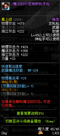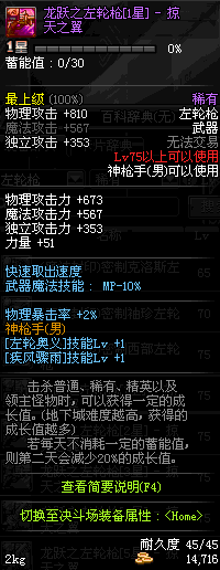 | 15 | (魔法封印)密制新式骑兵左轮枪 | *Lv13~21普通地下城怪物掉落 *完成[专职贺礼]任务 |