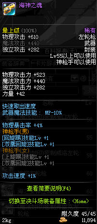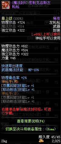 | 45 | 圣物 : 冥火精灵之转轮手枪 | *Lv45~51普通地下城怪物掉落 |