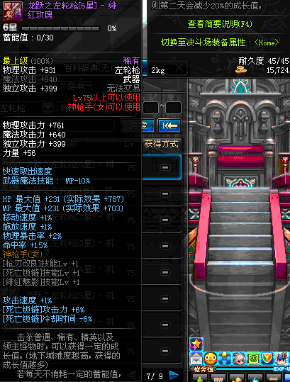 | 75 | 龙跃之左轮枪[6星] – 绯红玫瑰 | *完成二次觉醒任务后可以从NPC小铁柱处获得此道具。 | ||