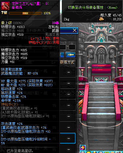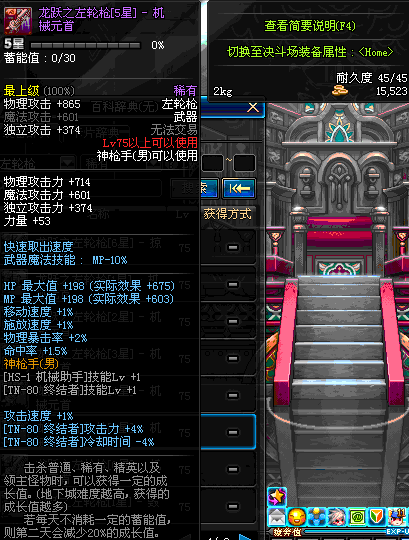 | 72 | 真·泰拉石左轮枪 | *设计图(70LV以上普通地下城 登场的NPC加百利 出售) *泰拉石左轮枪 → 用远古神器装备进化书升级(NPC船长鲁特 出售) |