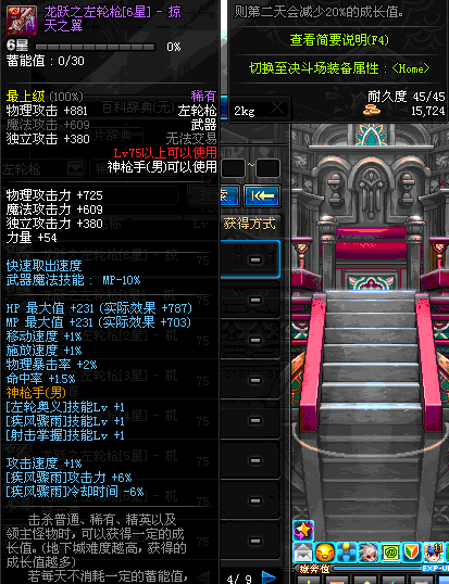 | 75 | 龙跃之左轮枪[6星] – 掠天之翼 | *完成二次觉醒任务后可以从NPC小铁柱处获得此道具。 | ||