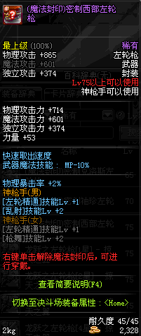 | 75 | (魔法封印)密制西部左轮枪 | *Lv75~81普通地下城怪物掉落 *完成[调查紫雾团]任务 *使用Lv75~81怪物掉落的设计图进行制作 |