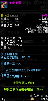 | 45 | 十字猎鹰 | *Lv45~51普通地下城怪物掉落 *在加百利的神秘商店购买 |