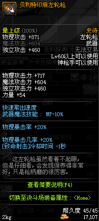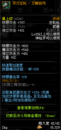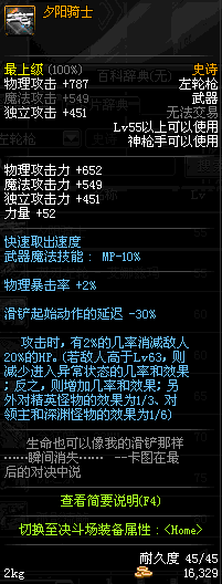 | 55 | 范哲利斯的绝望左轮 | *范哲利斯 掉落(无尽的噩梦) *在NPC敏泰的物品店购买(阿拉德陨石×330) |