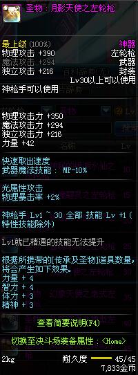 | 30 | 圣物 : 月影天使之左轮枪 | *Lv29~36普通地下城怪物掉落 |
