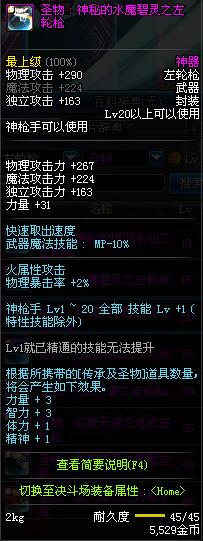 | 20 | 圣物 : 神秘的水魔碧灵之左轮枪 | *Lv19~26普通地下城怪物掉落 | ||