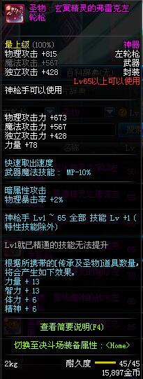 | 65 | 圣物 : 玄冥精灵的弗雷克左轮枪 | *Lv65~71普通地下城怪物掉落 |