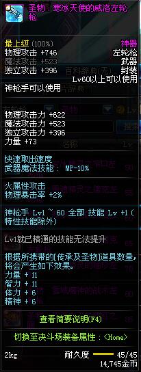 | 60 | 圣物 : 寒冰天使的威洛左轮枪 | *Lv58~66普通地下城怪物掉落 |