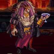 攻击:召唤暗黑精灵+黑暗诅咒,黑暗火花(使用无色晶体时出现, 只适用一次, 攻击很高),破灭的短剑(发射3把暗黑短剑, 僵直效果)